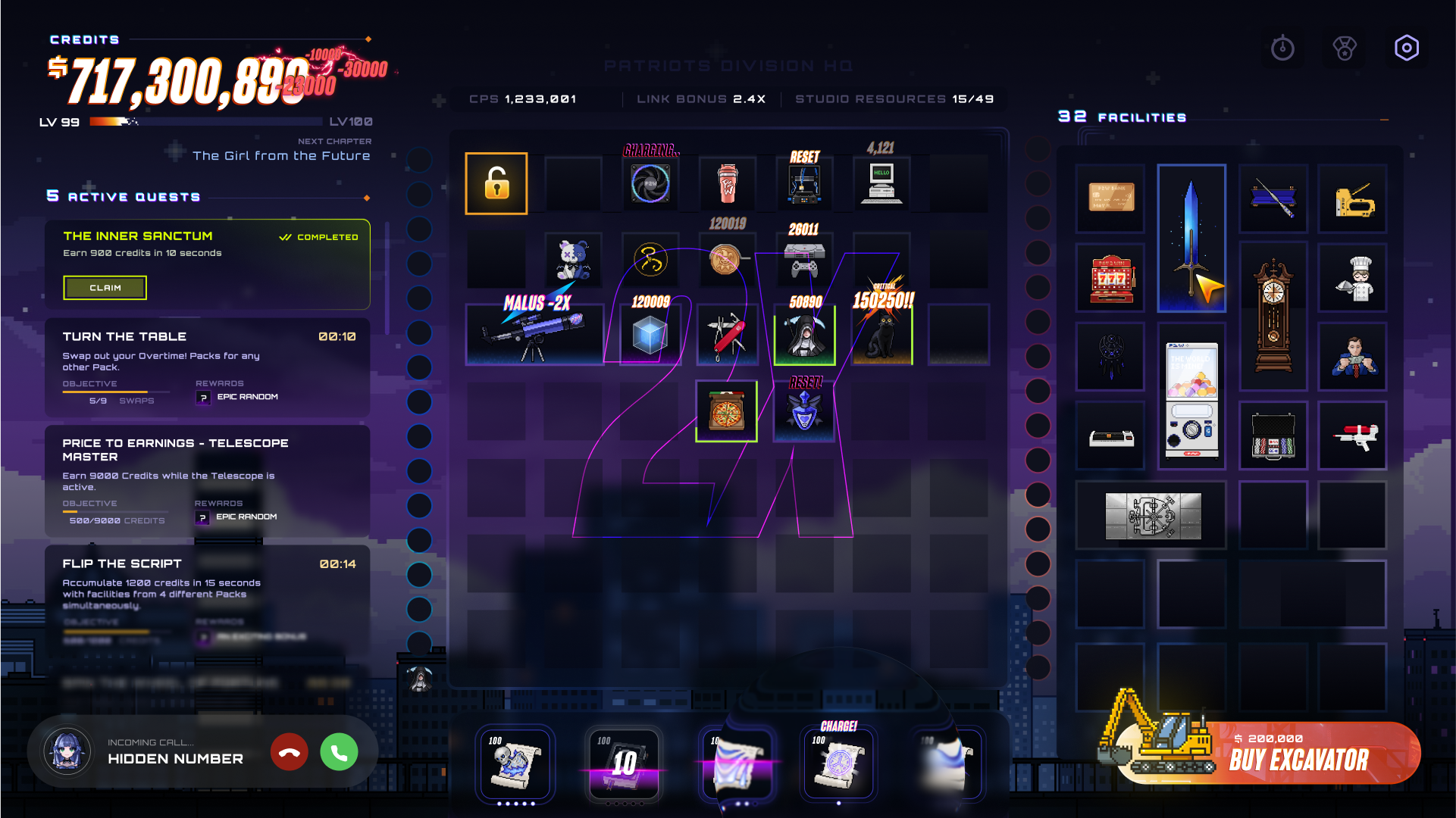 As your repute grows, so do your choices; switch seamlessly between passive idle gameplay and active resource generation to more quickly boost your progress in the game and story. Random rewards keep you guessing what's next, while you invest in your favorite facilities to make the numbers BIGGER.